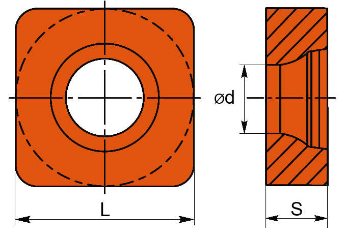 Опорная (подкладная) пластина для квадратных режущих пластин размера 19 мм.