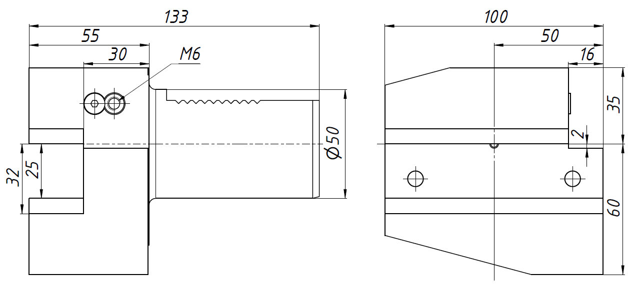 B1-50x32x55 Держатель инструмента VDI радиальный, правый