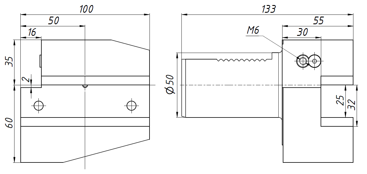 B2-50x32x55 Держатель инструмента VDI радиальный, левый
