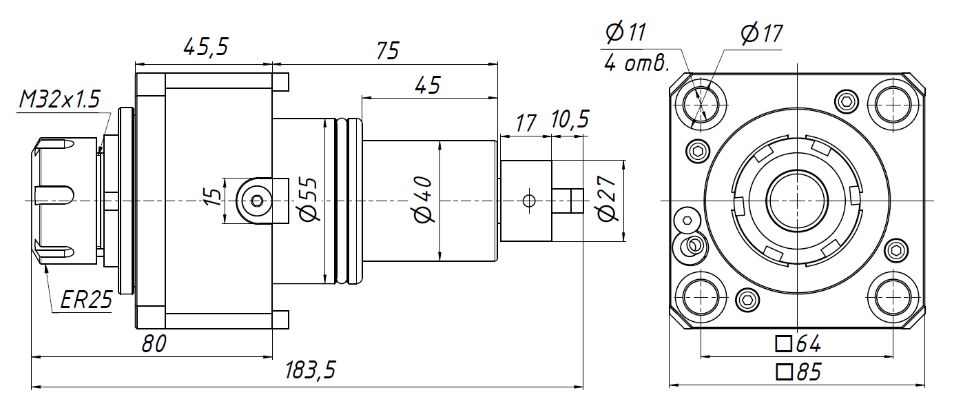 Осевой приводной цанговый блок BMT55-0-ER25
