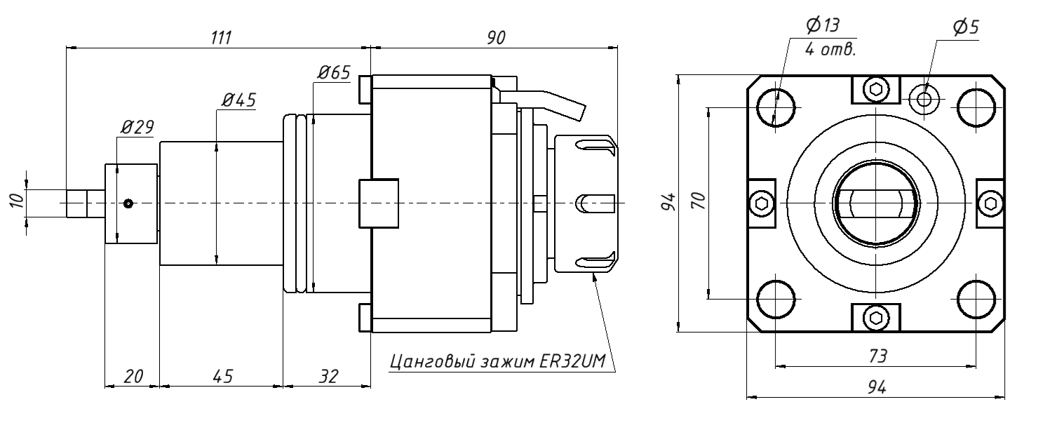 Осевой приводной цанговый блок BMT65-0-N-ER32