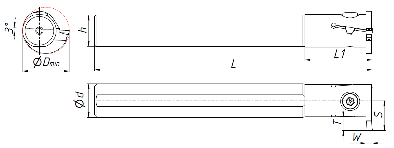Державка токарная для обработки внутренних канавок и профильной обработки со сменными пластинами. Державка совместима с пластинами MGMN300, MRMN300, MGGN300.