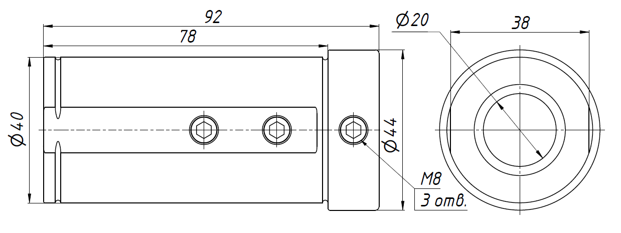 Втулка переходная для инструмента с цилиндрическим хвостовиком D40-d20