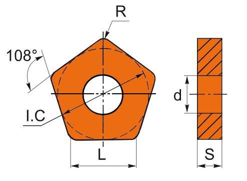 Фрезерная твердосплавная пластина PNMM пятигранной формы. Предназначена для фрезерования торцов, пазов, карманов и поверхностей с помощью корпусных торцевых фрез.