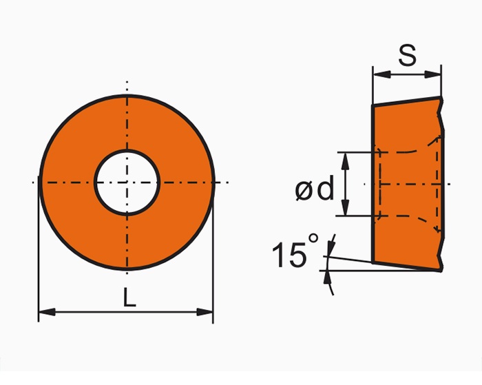 Фрезерная твердосплавная пластина RDKX применяется для фрезерования торцов, пазов, карманов, скруглений и фасонных поверхностей с помощью корпусных концевых и торцевых фрез.