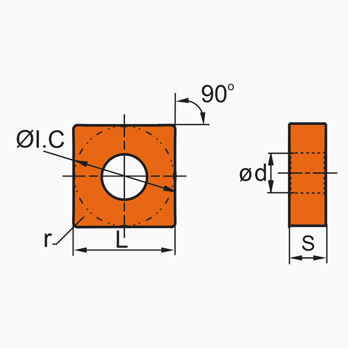 Твердосплавная пластина SNMG квадратной формы. Предназначена для токарной обработки наружных или внутренних конических и цилиндрических поверхностей в зависимости от используемой державки.