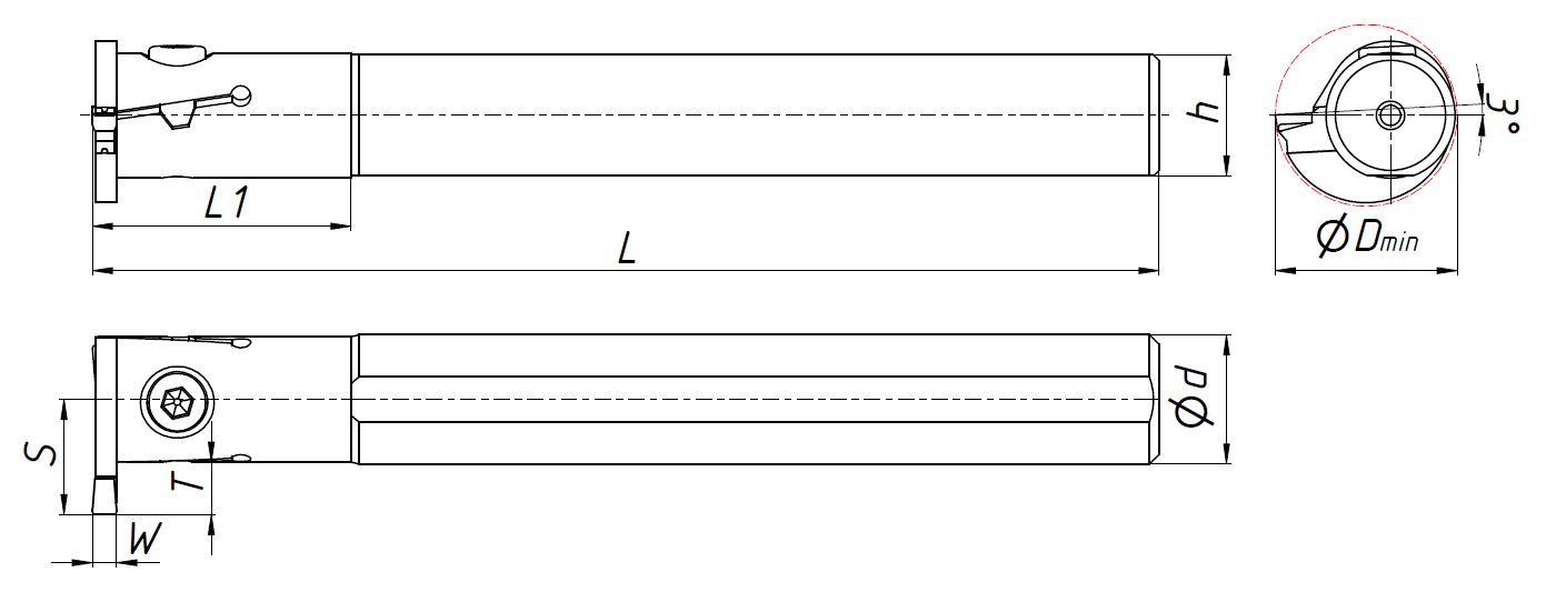 Державка токарная со сменными пластинами, предназначенная для обработки внутренних канавок и фасонных поверхностей. Державка совместима с пластинами MGMN200, MRMN200, MGGN200.