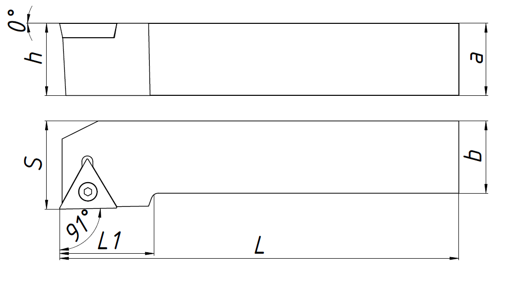 Державка токарная для наружной обработки по металлу со сменными пластинами. Крепление типа S (закрепление пластин винтом). С углом в плане 91°. Предназначена для продольного точения. Державка совместима с пластинами TC**16T3**.