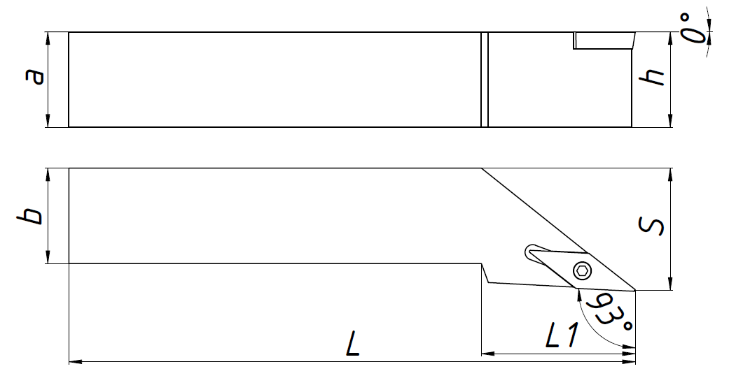 Державка токарная для наружной обработки по металлу со сменными пластинами. Крепление типа S (закрепление пластин винтом). С углом в плане 93°. Предназначена для наружной контурной обработки. Державка совместима с пластинами VB**1604**.