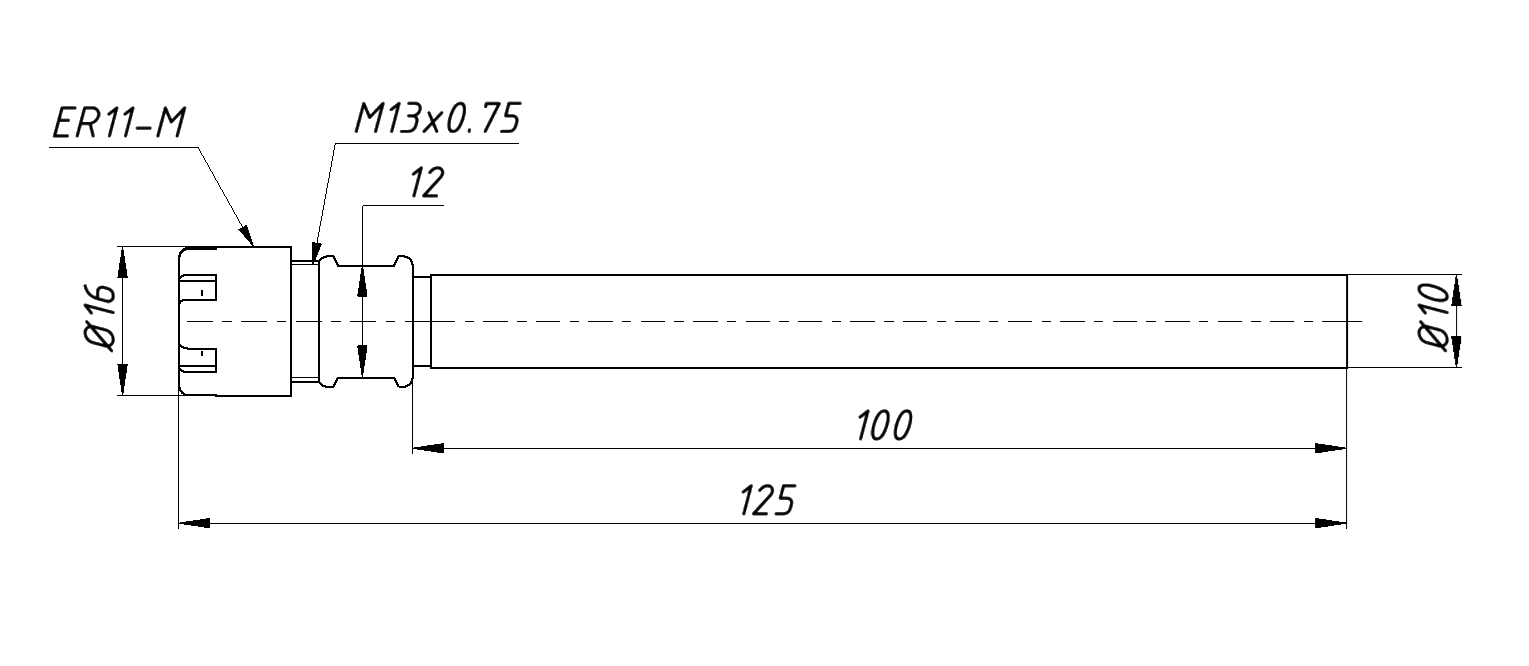 Удлинитель цанги (фрезы) ER11M10-100 (C10-ER11M-100)